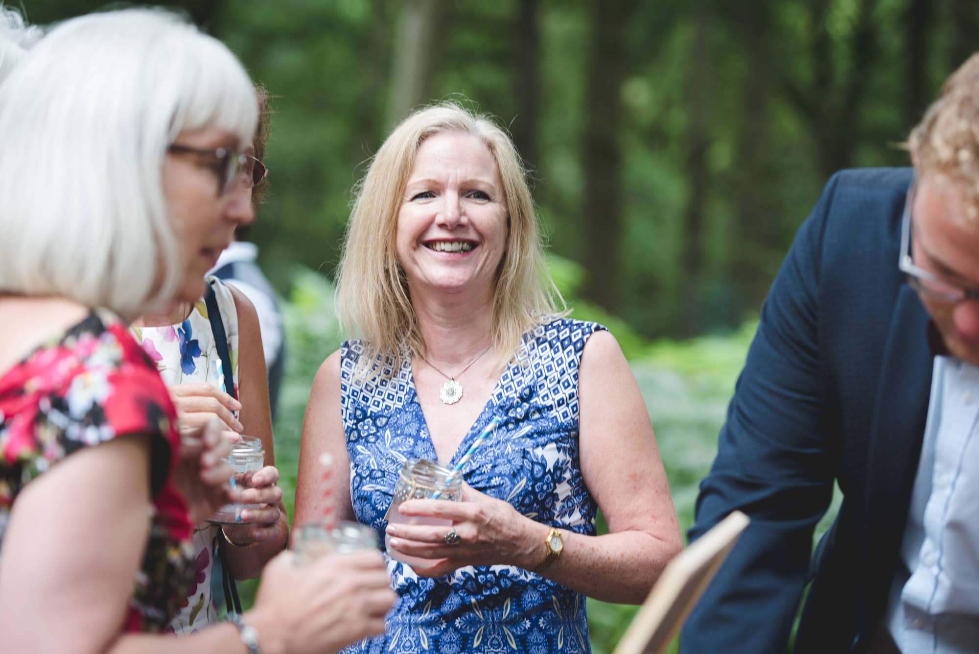 Georgi & Neil were breaking with tradition by walking down the hay bale aisle together, and the whole bridal party made their way to the clearing with the Harry Potter theme music filling the air. Waiting to greet them at the end of the aisle was a vicar, the Father of one of the groomsmen, there to conduct their woodland blessing.