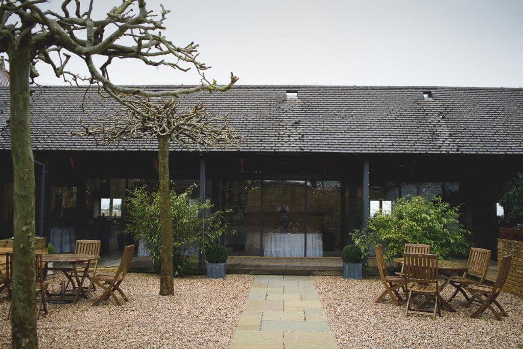 The venue is in the grounds of a manor house with glorious views of the countryside. The barn is built with rustic oak timbers and floor to ceiling windows.